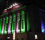 ちょっと前から会社の近くにある銀行の建物がリースに出されているんだけど、博物館チックな建築にリボンかけてライトアップしてあるのできれい。こういう第三色の光の組み合わせに弱いのね、私。あぶく銭手にして、こういうところでパーティーやったら楽しいだろうなと思うが、知り合いを総動員してもこの広さは埋まらないだろうなあ。