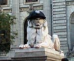日本ではON対決が話題になっているようだけど、こっちもサブウエイシリーズ(別にサンドイッチ屋がスポンサーな訳ではなくて、ヤンキースとメッツどちらのホームグラウンドもニューヨークの地下鉄沿いに位置することからの名前)で盛り上がりを見せている。例によって個人的には全く興味がないのだが、今日市立図書館の前を通ったら、シンボルのライオン(狛犬みたいなもの)がヤンキースの帽子をかぶっていた。工事中の時にはヘルメットをかぶったりしてなかなかお茶目なのだが、これいちいち特注しているんだよなあ。