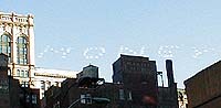内職に出かけたのだが結局連絡が付かず、4時間つぶして帰る羽目に。(怒)そのときに見てちょっと感動したのが、空にドメイン名を描く広告。数社が共同で行っているような感じで、航空ショウなんかで見られる5機編隊の飛行機がリアルタイムで飛行機雲(のようなもの)を描いていくのはなかなかにいい感じ。風があったので5分後には認識不能になってしまうんだけど、晴れるときには雲の全くないことが多いニューヨークの空にぴったりな広告戦術だなと思った。