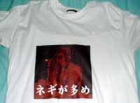 初めてインクジェットプリンタでアイロンプリントに挑戦。いろいろと考えたが、まあとりあえずこんな感じはどうだろうと著作権無視で「ネギが多め」Tシャツを作ってみた。