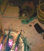 スタジオは禁煙なので外に喫煙所があるんだが、風よけは作ってみたものの寒いので、防寒用に七輪が置いてある。最初は石油ストーブとかも考えたんだけど、この原油高の中ただでさえ苦しい経営を圧迫するのは必至なので、火を扱うのは危ないとは思いつつシャレで七輪にしてみた。