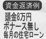 しかし、このゆがんだ書体といい、下の字数から行くと「ボーナス払い無し」って書けるのにあえて誤解を招く「ボーナス無し」の表記。まさか今時台紙に手貼りなのか?マンションのチラシなのに…。