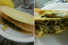 某学校の学園祭に(終わりがけに)行ったら玉せん用のえびせんが大量に余ったらしく、強制的に持ち帰らされた。(さすがにキャベツは断った)帰ってから、屋台の王様焼きそばがあわないわけがないと思い、下段ソース焼きそば・上段卵焼きマヨネーズがけのスペシャル玉せんを作ってみた。